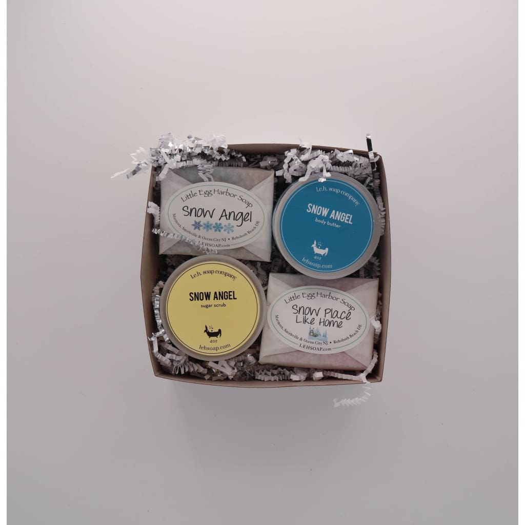 This year the Snow Angel gift set includes Snow Angel soap (3oz), Snow Place Like Home soap (3oz), Snow Angel Body Butter (4oz) & Snow Angel Sugar Scrub (4oz). Comes ready to gift!