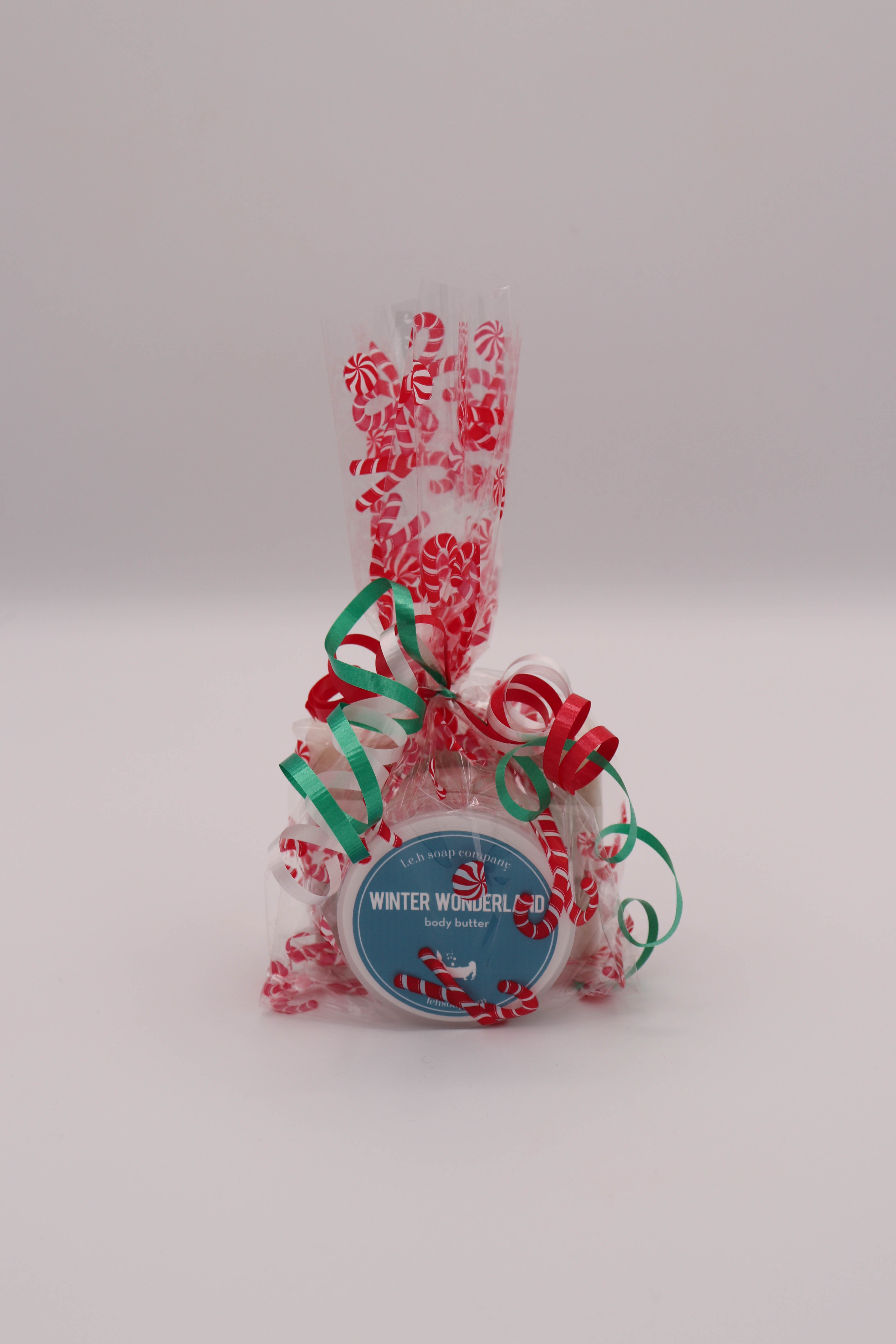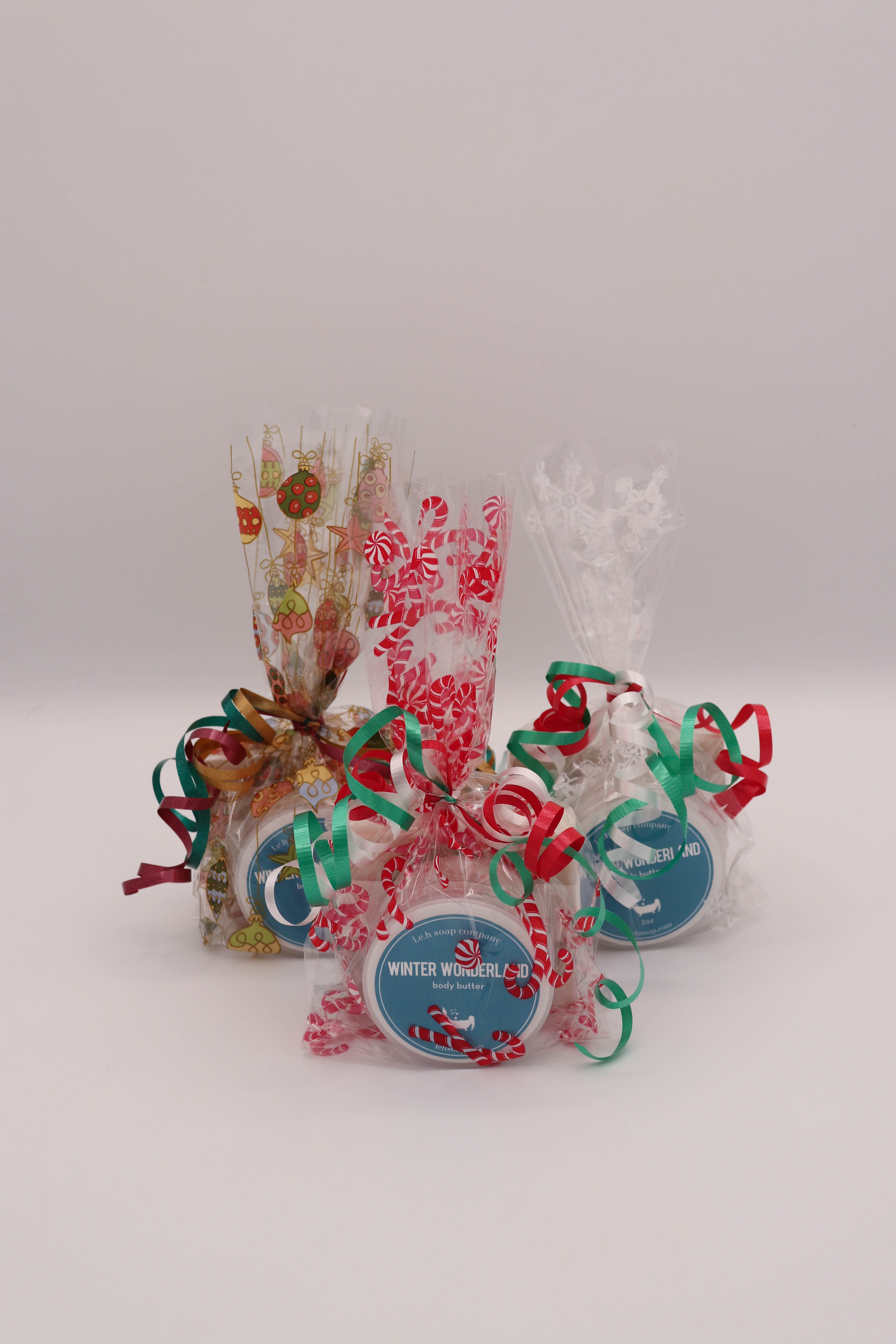 Looking for unique teachers' gifts? Gifts for co-workers? Pollyanna? We have you covered. Each gift bag includes one 2 oz. Body Butter and one 3 oz. L.E.H. Handmade Soap Bar. Wrapped in a festive bag with ribbon closure.